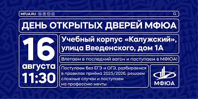 МФЮА приглашает на День открытых дверей 16 августа