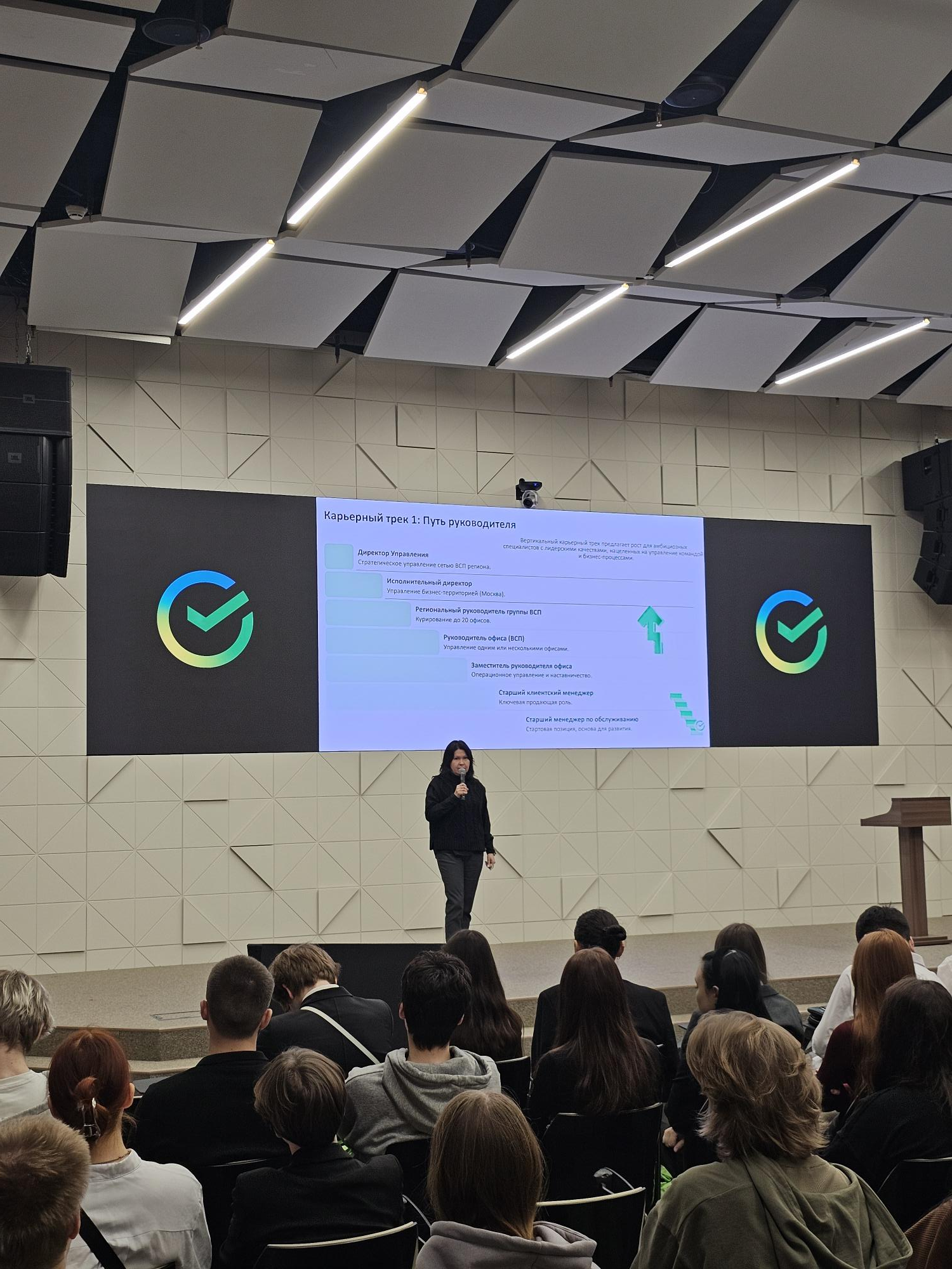 Для студентов подготовили программу «СБЕР ПРИГЛАШАЕТ ПОЗНАКОМИТЬСЯ БЛИЖЕ!». Простыми словами рассказали студентом про экосистему СБЕР и старт карьеры в банковском секторе, карьерные траектории для выпускников колледжа, бонусы и привилегии для сотрудников, образовательный контент от СБЕРа для студентов.