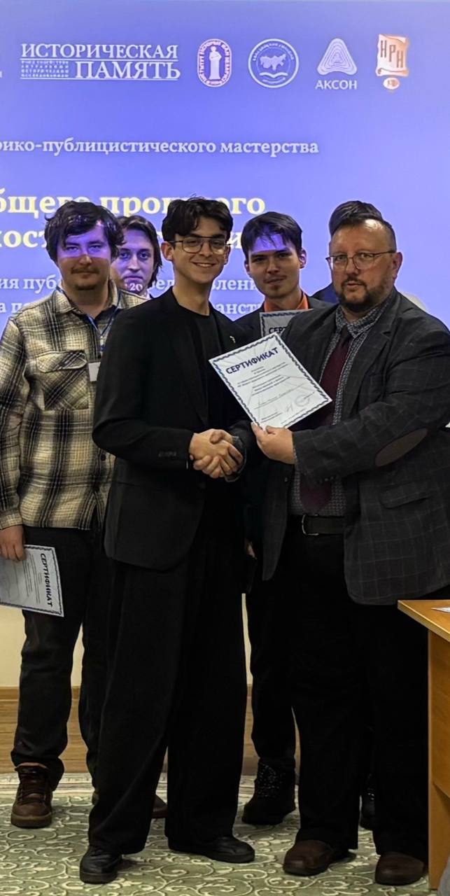 Результатом плодотворного сотрудничества кафедры Истории и философии Московского финансово-юридического университета и фонда «Историческая память» стало участие в работе Международной школы историко-публицистического мастерства студентов первого курса по направлению подготовки «Юриспруденция» Виктора Резника и Тимура Лигериса с докладом «Отражение в российских учебниках истории геноцида народов СССР в период Великой Отечественной войны».
