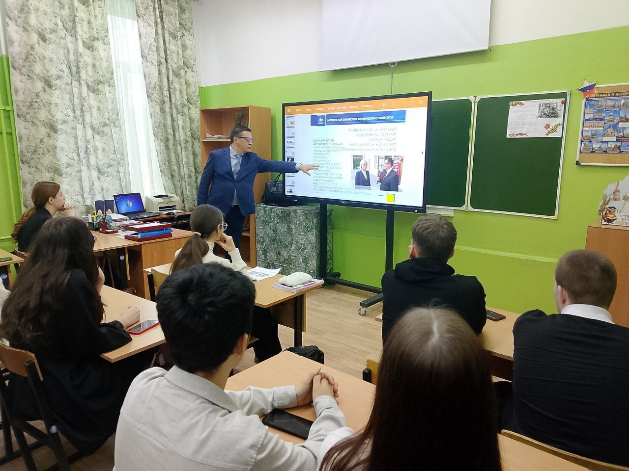Обучающиеся медиакласса познакомились с технологией интервьюирования в журналистике, особенностями профессии, узнали о самых известных интервьюерах страны и мира. Лектор рассказал о подготовке к интервью, выстраивании диалога и важности соблюдения профессиональной этики.