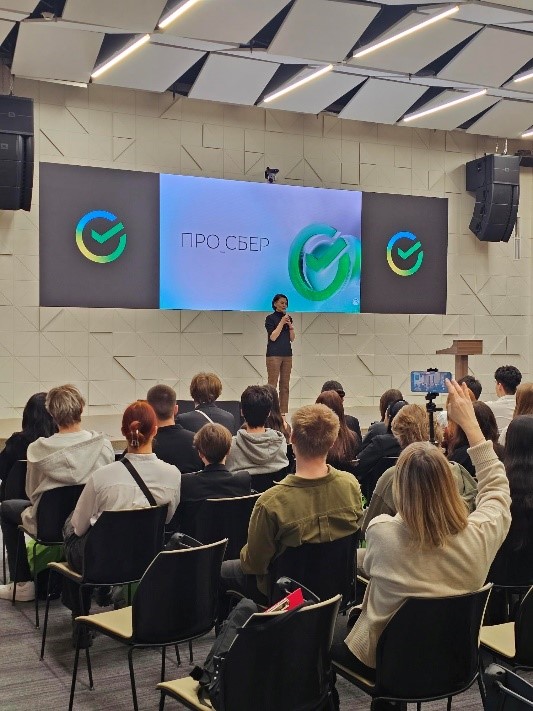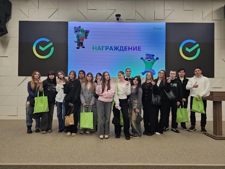 Студентам рассказали об экосистеме Сбера, возможностях старта карьеры в банковской сфере, карьерных траекториях для выпускников, а также бонусах и образовательных программах для сотрудников. Все участники получили брендированный мерч, а студентка Ногина София стала призёром викторины.