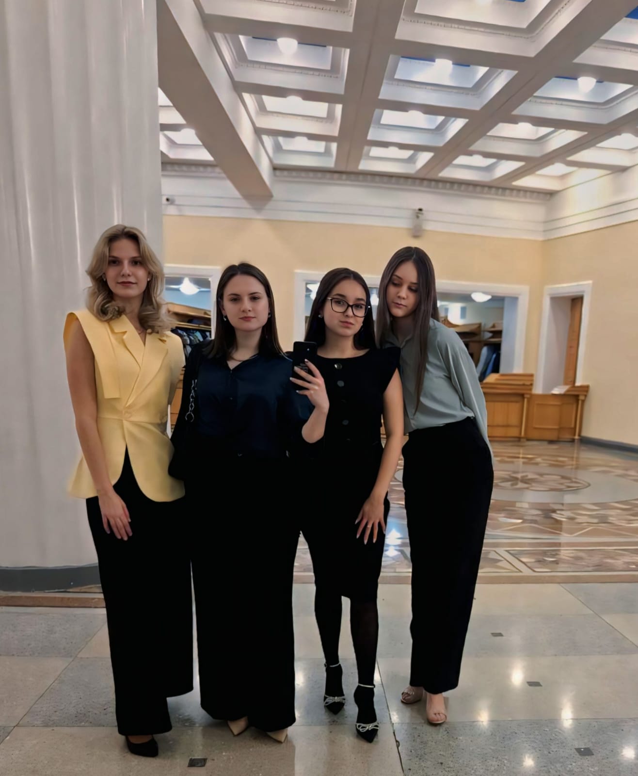 Гостями мероприятия стали помощник Коптевского межрайонного прокурора г. Москвы Беленко Виктория Романовна и юрист Федерального казначейства Белясова Екатерина Дмитриевна. В тёплой и открытой атмосфере они рассказали о своем профессиональном пути, поделились опытом работы в государственных структурах и ответили на вопросы студентов о начале карьеры, построении профессиональных компетенций и современных вызовах юридической практики.